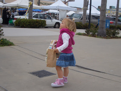 Marina has a beautiful courtyard in front of her house and the girls always like to say bye-bye to the flowers. Carly is always amazed because the flowers at Marina's house are still green week after week, while our flowers are an entirely different story.